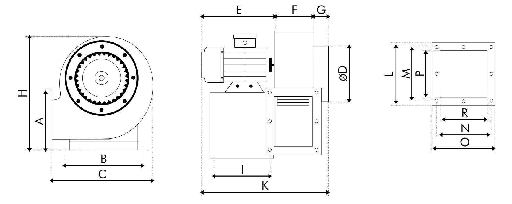 • Impellers are forward curved and made from galvanized sheet metal.